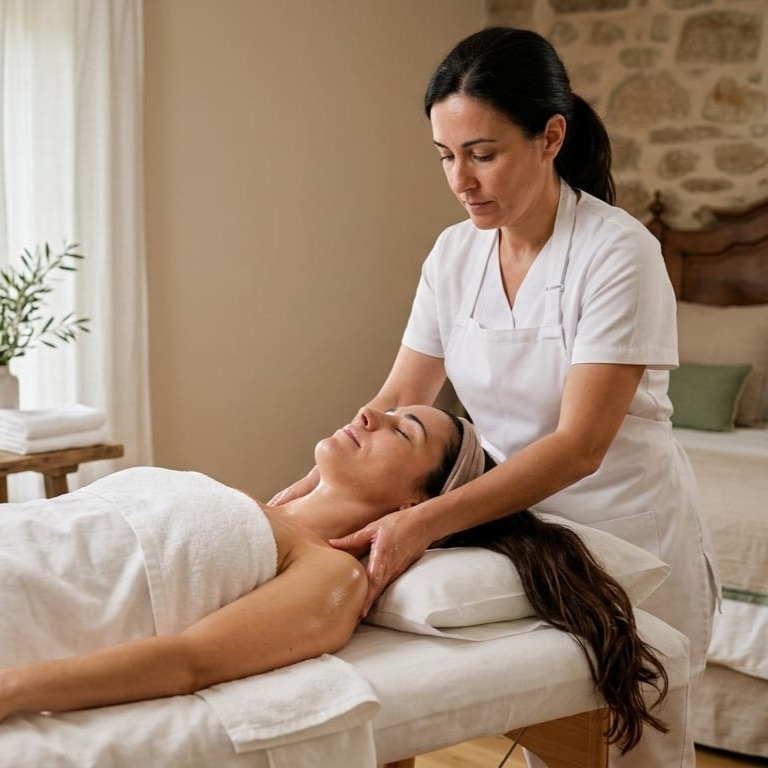 Masaje Relajante Integral en la Adrada trasciende la relajación superficial: sincroniza cuerpo y mente para una regeneración completa que perdura días.